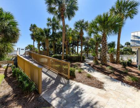 Captain's Walk's well-groomed grounds feature tropical landscaping, including palm trees. Also found on the grounds are a large swimming pool, which is heated in the cooler months, a kiddie pool, a large covered deck, and multiple sundecks. There are also community gas grills and a shaded pavilion, perfect for grilling out and enjoying a meal outdoors. To get to the beach, guests can take a boardwalk for a convenient stroll before getting their feet in the sand and enjoying the gentle ocean breeze.
