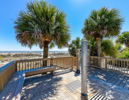 Captain's Walk's well-groomed grounds feature tropical landscaping, including palm trees. Also found on the grounds are a large swimming pool, which is heated in the cooler months, a kiddie pool, a large covered deck, and multiple sundecks. There are also community gas grills and a shaded pavilion, perfect for grilling out and enjoying a meal outdoors. To get to the beach, guests can take a boardwalk for a convenient stroll before getting their feet in the sand and enjoying the gentle ocean breeze.